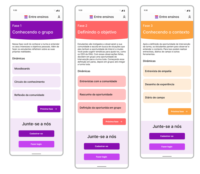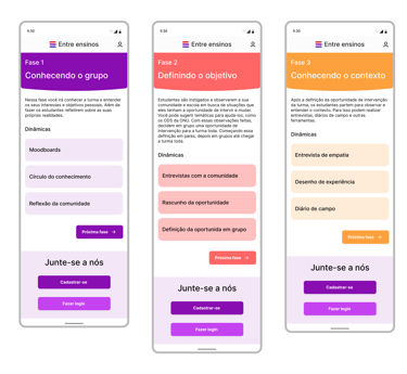 Atuei como Product Designer & Service Designer, responsável por pesquisa qualitativa, definição do problema, síntese de insights, desenho da metodologia educacional, decisões de produto, arquitetura da experiência, design da plataforma, identidade visual e gamificação.