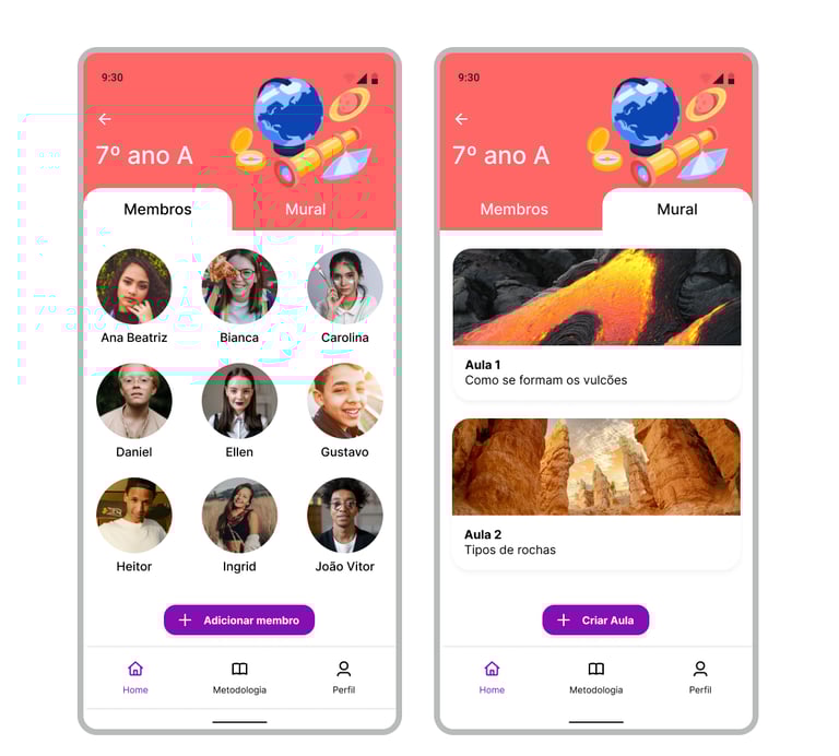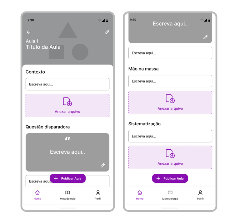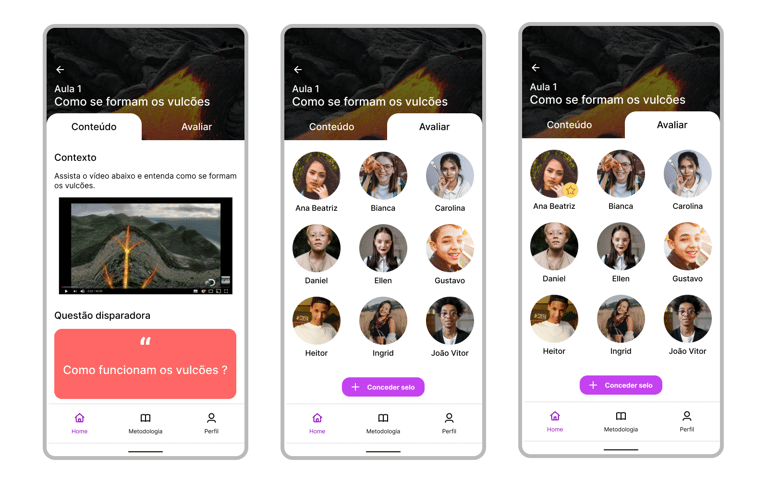 Os professores elaboram as aulas seguindo o modelo de criação de plano de aula e com o auxílio da plataforma, criam as aulas e compartilham o conteúdo com os estudantes. Após isso, eles concedem os selos a cada conteúdo aprendido.