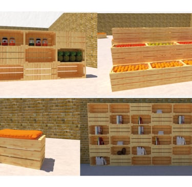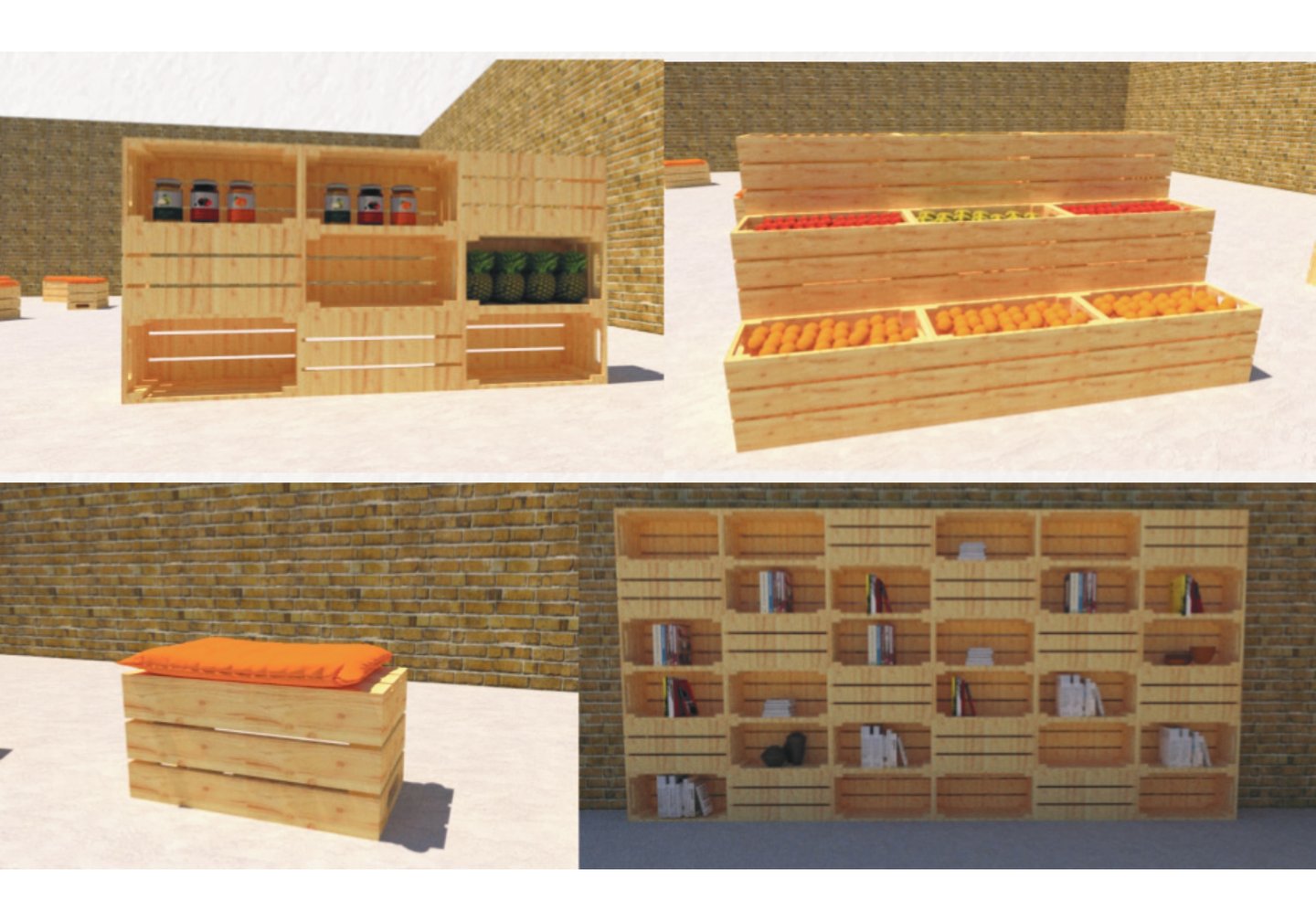 O projeto é composto por quatro espaços principais onde serão organizadas as atividades de comercialização, aprendizagem, triagem e compostagem. Todo o mobiliário e layout foi pensado para que o projeto pudesse atingir o objetivo de ser replicável em outras regiões. Tendo como base os caixotes de feira de madeira facilmente encontrados por todo o país.